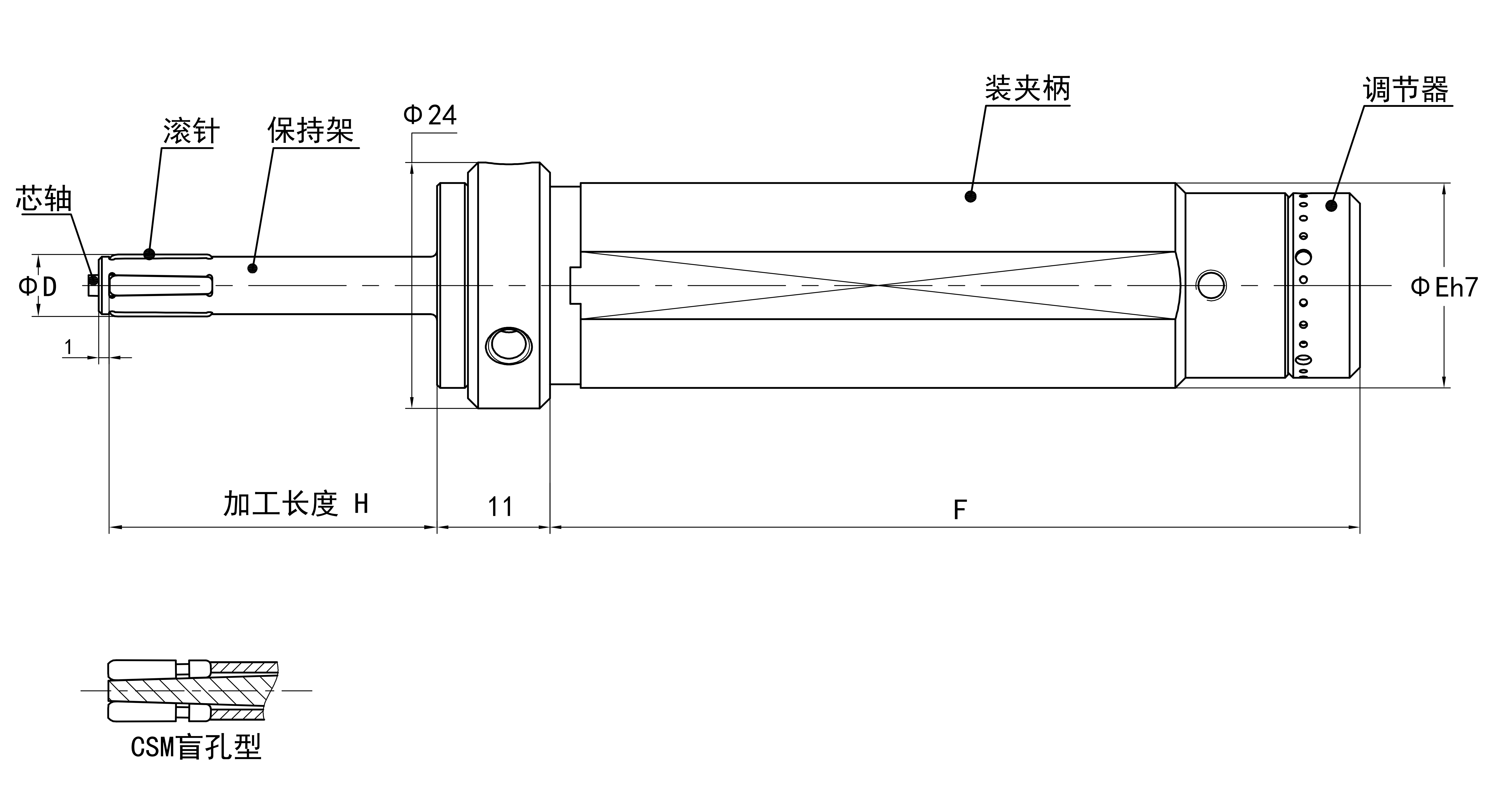 工具直徑 調(diào)節(jié)范圍 最大有效加工長度H 裝夾柄